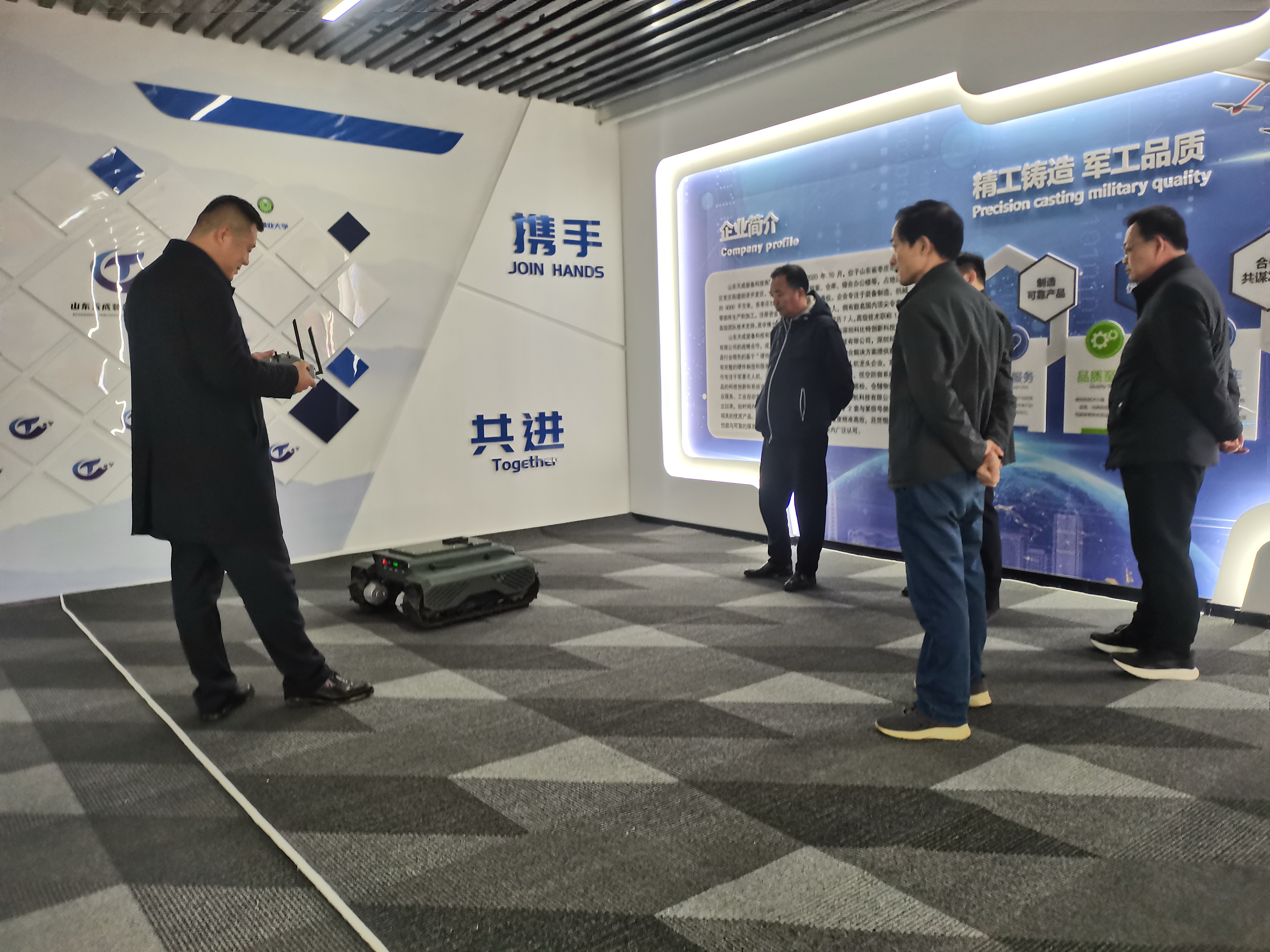 在公司产品展厅,天成装备总经理张洋亲自上阵,逐一演示智能无人车、工业无人机、高精度无人机反制装备等核心产品。自主巡航、精准作业、低空探测、安全反制......一项项硬核功能轮番登场,展现了天成装备在智能无人系统与低空安防领域的深厚技术积淀。